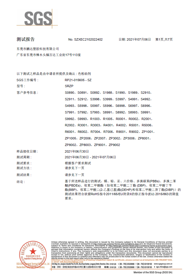 原材料通過SGS測(cè)試符合歐盟REACH,PaHS、ROHS及無鹵指令,備有美國(guó)